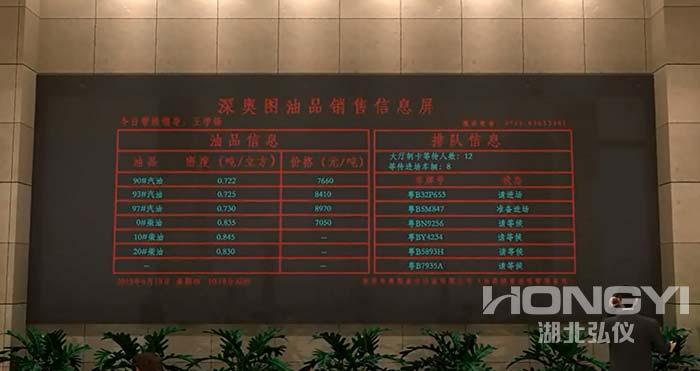 為了能直觀的顯示裝車區(qū)的裝車鶴位運行狀態(tài),方便司機實 時了解進場裝車進度,在裝車候車區(qū)設置—套大屏器顯示,大屏幕顯示與計算機連接,接收計算機的指令顯示相關的內容。